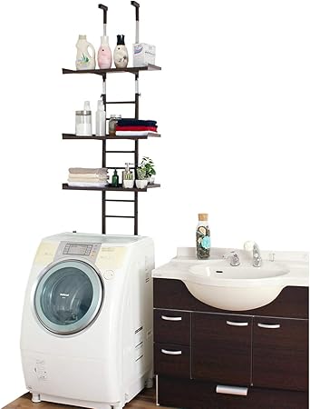 Amazon 川口工器 突っ張り ランドリーラック つっぱり 洗濯機ラック 棚 3段 ブラウン 棚3段 川口工器 Kawaguchi Koki ランドリー収納