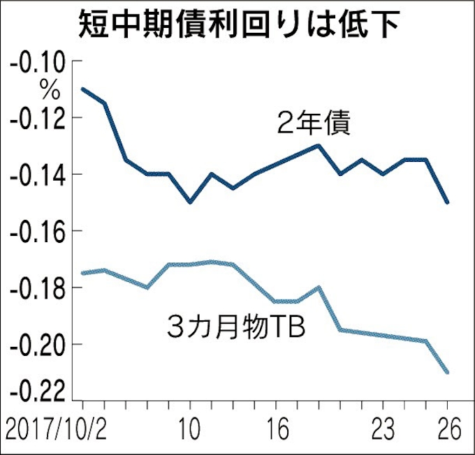 短期国債 初のマイナス金利で取引成立 3カ月物 日本経済新聞