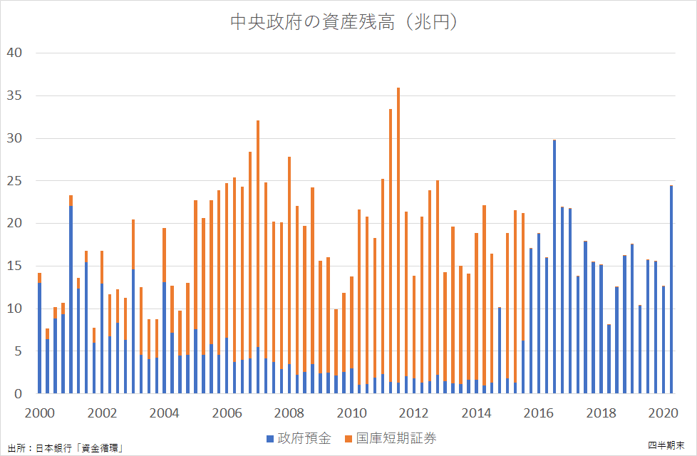グラフで見る 金融負債として保有されている国庫短期証券の動向 金融負債残高の推移 四半期ベース 出所 日本銀行 資金循環統計