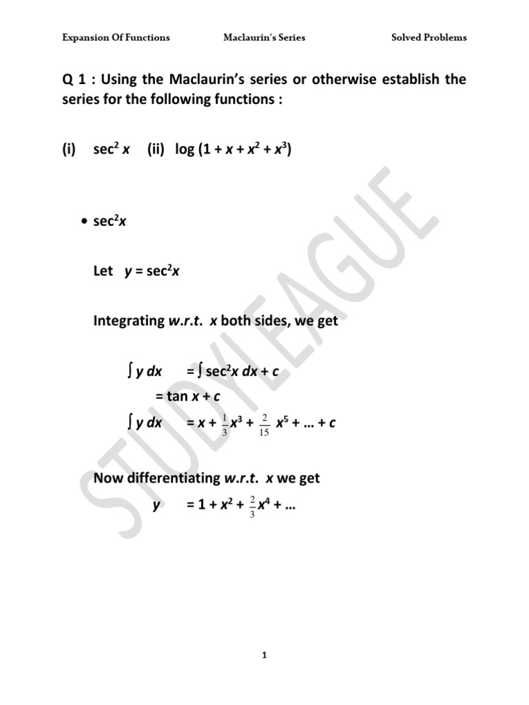 1 Write The Maclaurin Series Expansion Of The Following Functions N Begin Array L L Text I E X Text Ii