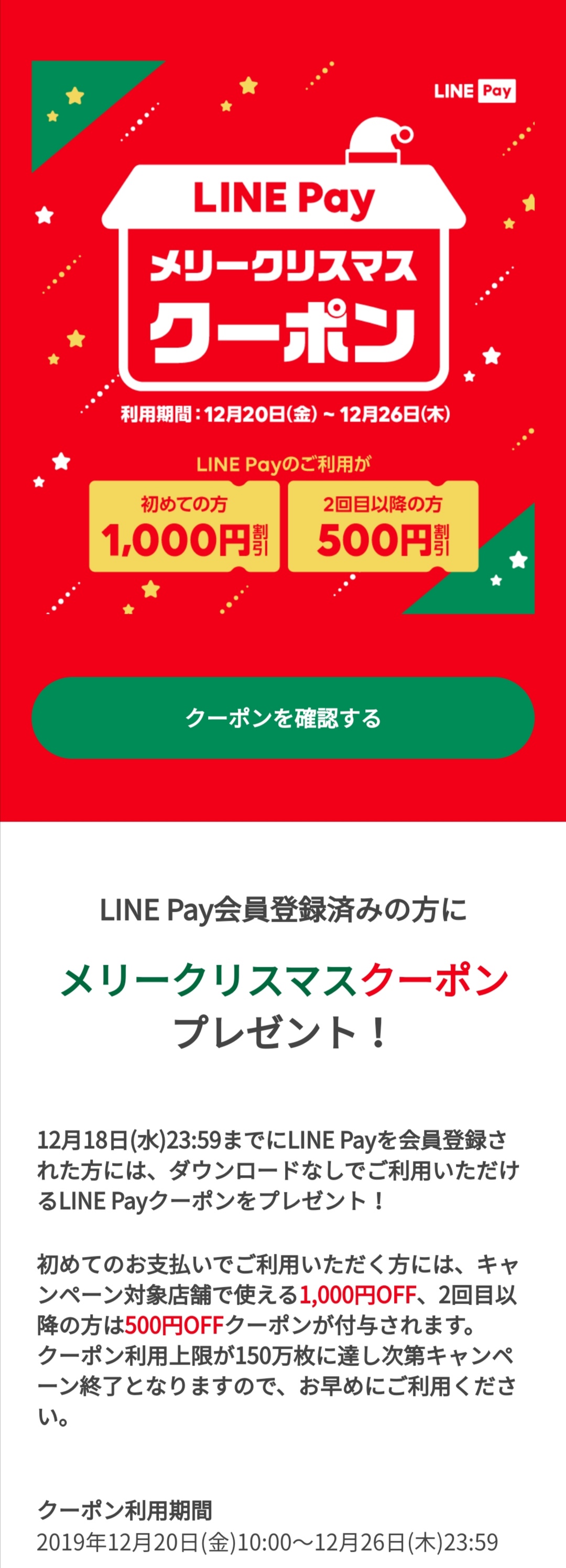 Line Pay メリークリスマスクーポン500円 使ってきました まさジローの井底漂流記