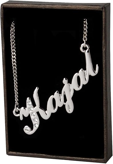 Amazon Com Zacria Indian Name Necklaces Kajal Personalized Necklace White Gold Plated 18k Curb Chain Swarovski Crystal Christmas Valentines Including Bag Box Jewelry