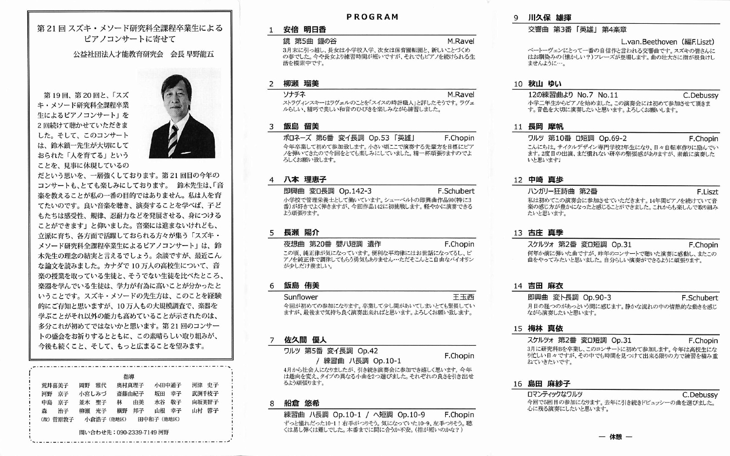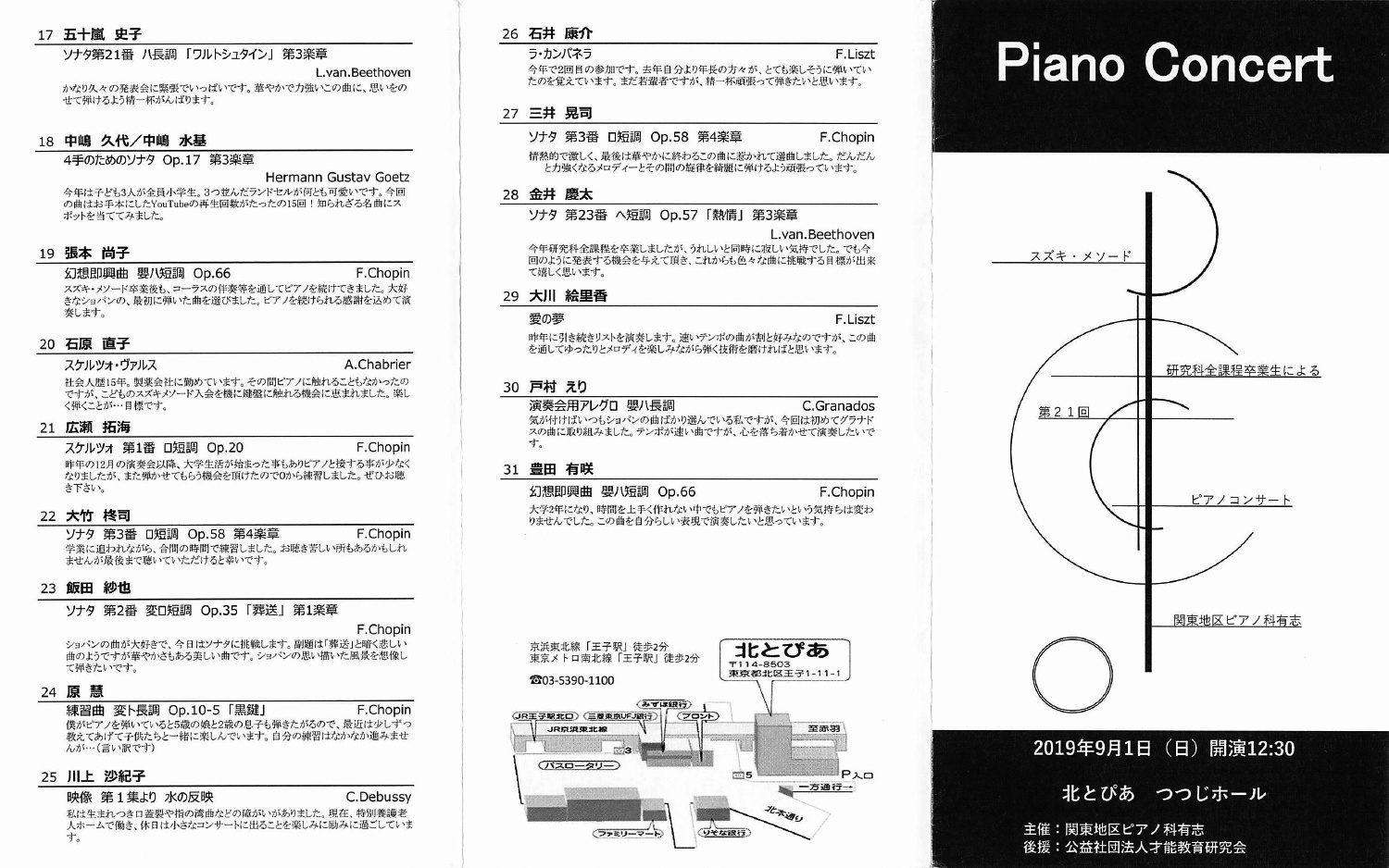 19 05 17 金 19 00横山幸雄 オールショパンピアノリサイタル 公開レッスン 摂津響saal