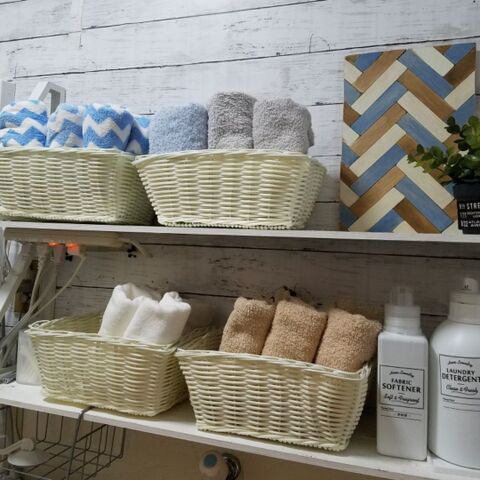 ダイソーのプラかごで悩み解消 脱衣場のタオルを使いやすくカスタマイズ 暮らしニスタ