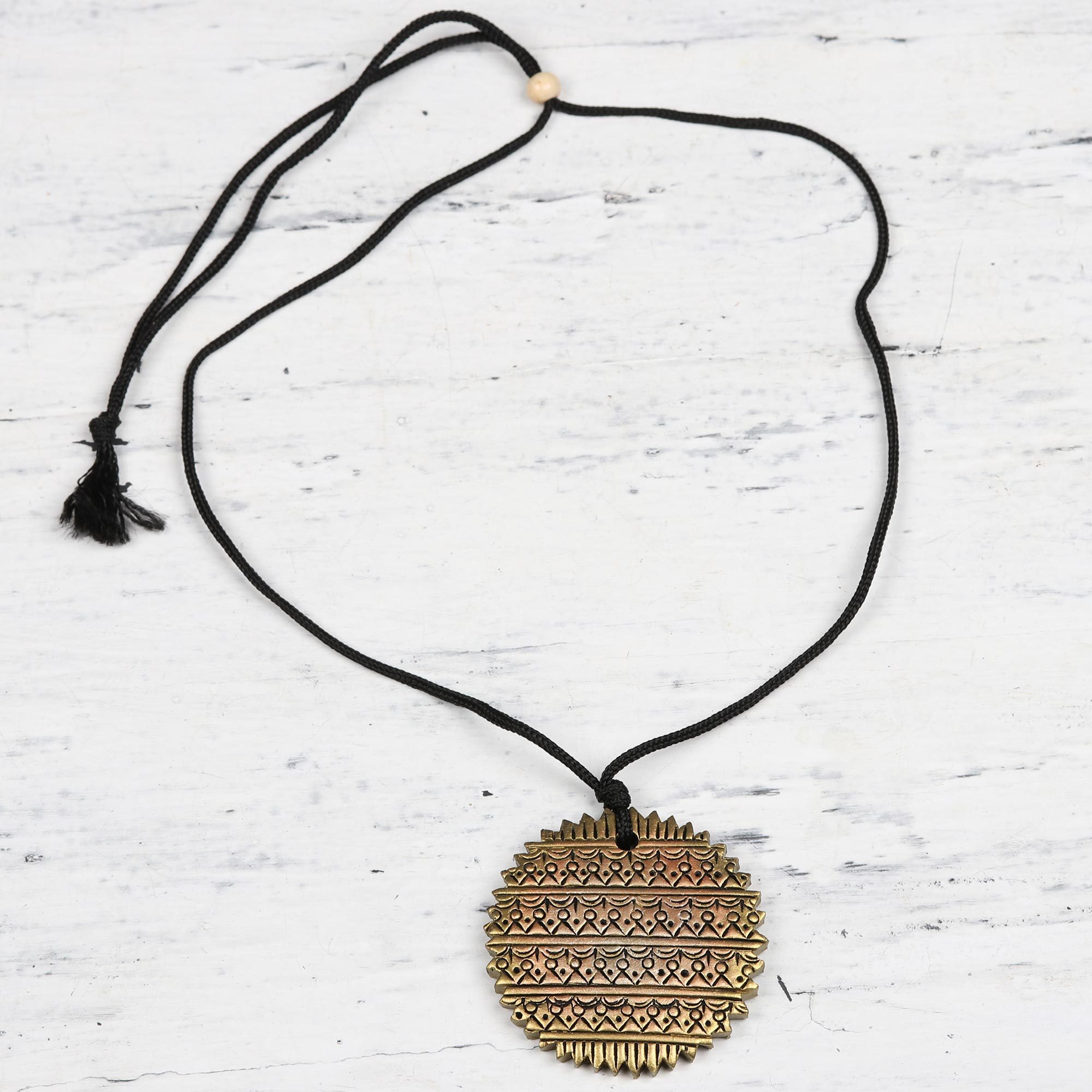 Hand Painted Golden Ceramic Terracotta Medallion Necklace Golden Elegance Novica