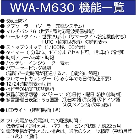 Casio Wave Ceptor Wva M630b 3ajf 電波ソーラー機能搭載のカシオ ウェーブセプター