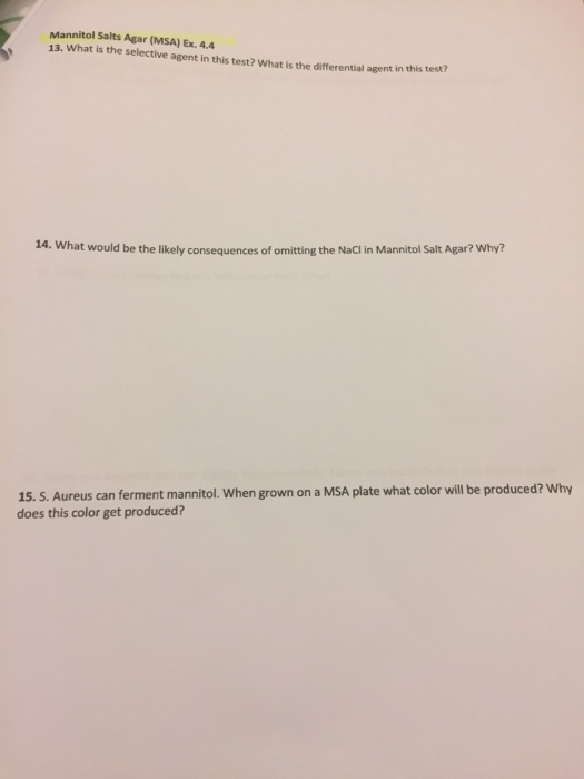 Solved Mannitol Salts Agar Msa Ex 4 4 13 What Is The Chegg Com