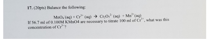 Solved 17 pts Balance The Following Mno4 Aq Cr Chegg Com