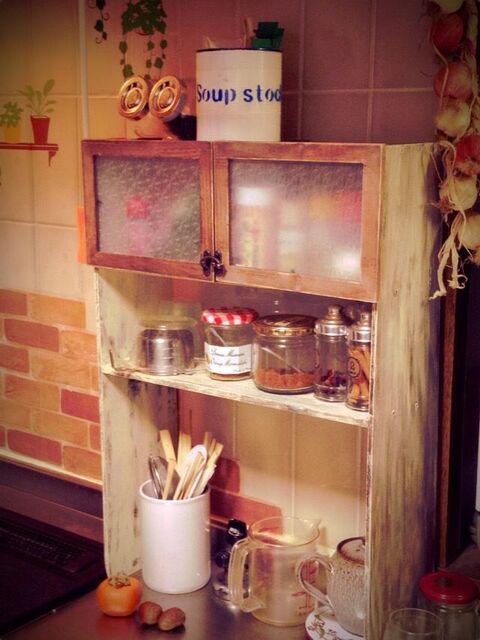 100円カフェ風棚 扉はセリアの額縁 インテリア 収納 100均 Diy 100均 インテリア