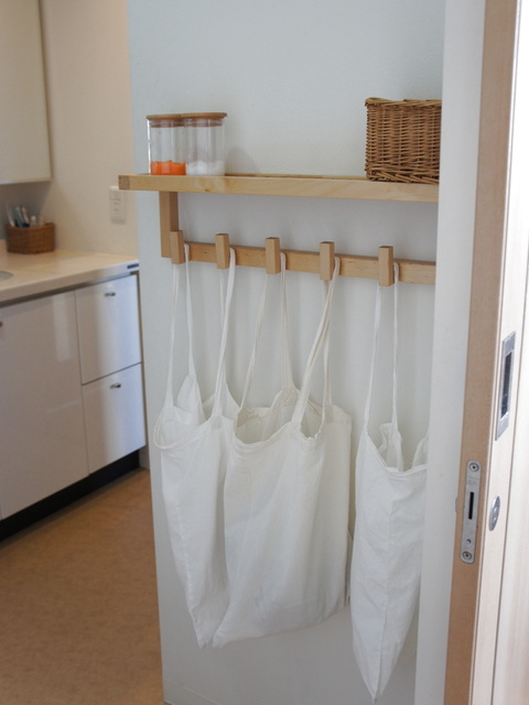 洗濯カゴをやめて洗濯物はエコバッグで吊るす 暮らしニスタ