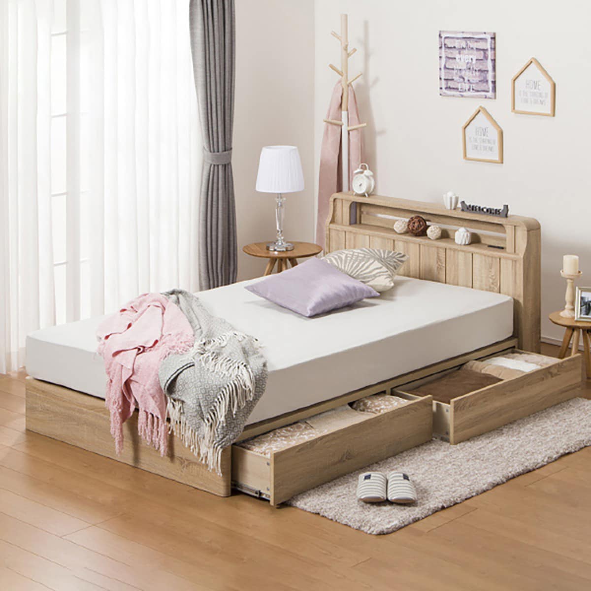 アンティーク調木目ベッドフレーム 引出し有 通販 ニトリネット 公式 家具 インテリア通販