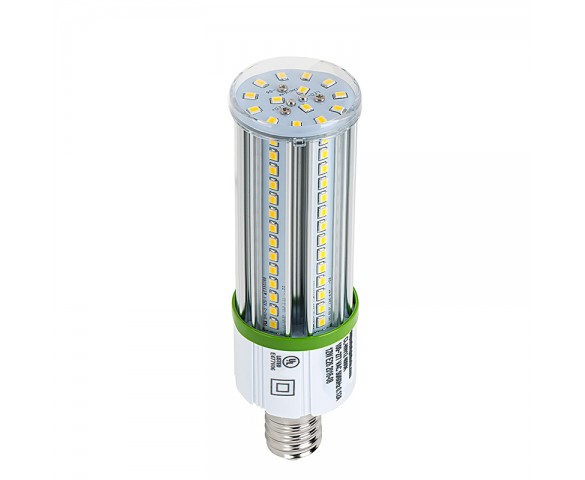 This 12W LED corn bulb has an E26/E27 screw base and can be used for applications requiring bright light, such as garages, post top lights, workshops, or basements.