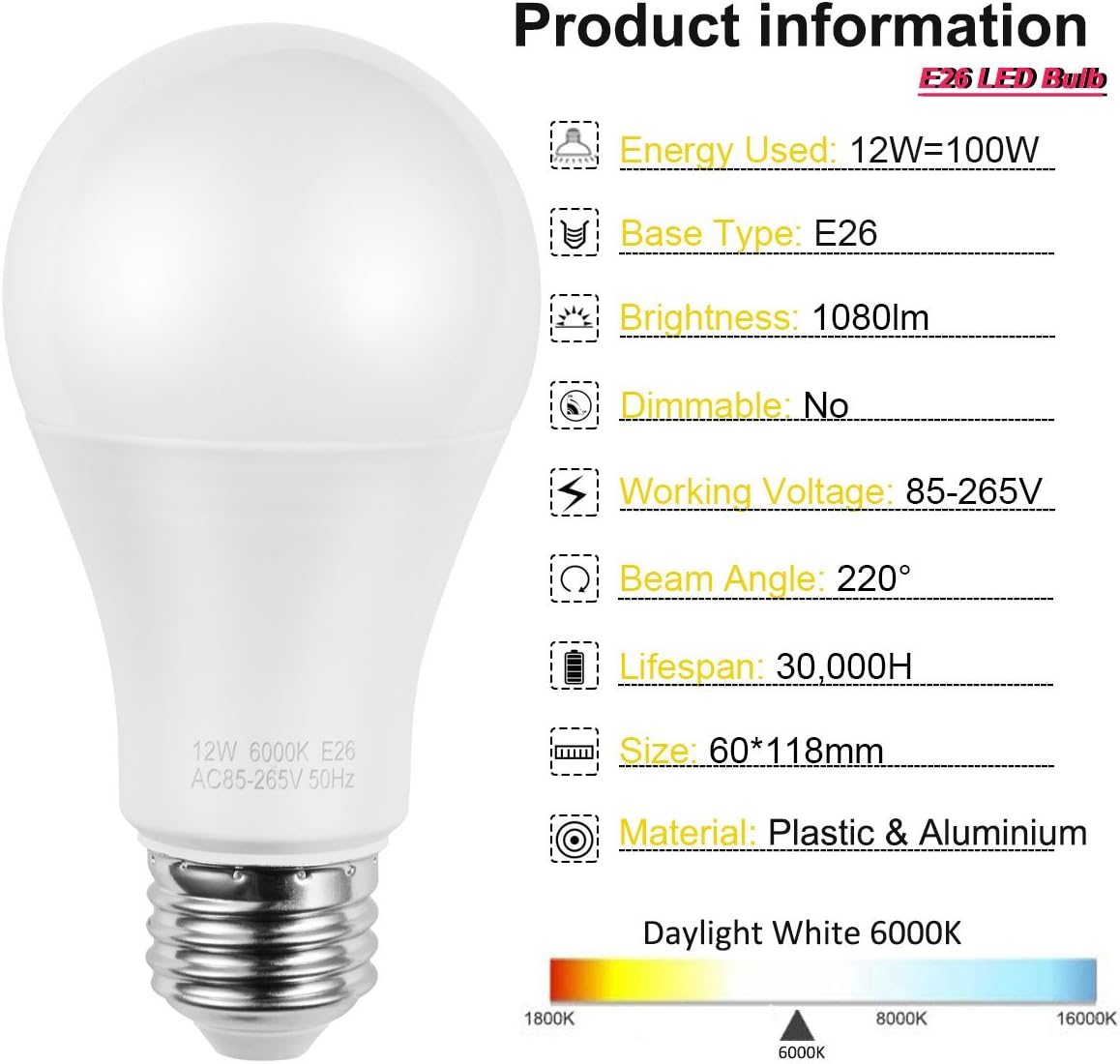 6 Pack 100W Equivalent LED Light Bulbs, 14W 1600 Lumens 5000K Daylight White Non-Dimmable, A19 E26 Standard Base, UL/FCC Listed, Hour Lifetime 2 5 5 1 $19.99 ($3.33 / unit). This large LED bulbs come with various power options, from lowest 30w to highest 300 watt, include 50w, 60w, 80w, 100w, 1w, 150w, 180w, 0w, 250w. LOHAS Smart Light Bulb, 1 Color Changing Wifi Control LED Bulbs, E26 Smart RGB Cool White Light, 100W Equivalent High Brightness Bulb, Dimmable with APP Alexa Google Assistant Compatible Light High quality LED bulbs, solar light, smart wifi light, led strip for indoor and outdoor lighting.