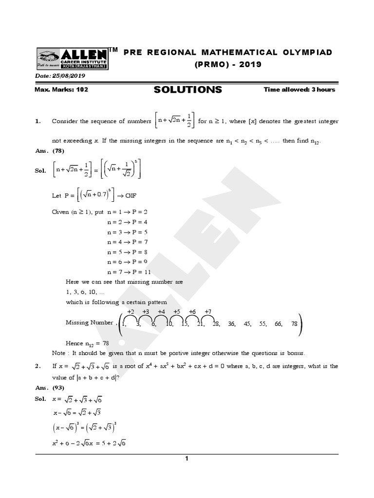 P(1) = 7^1 + 2 p(1) = 9 So it works for 1;. Let t1 = 1 and tn+1 = (t2 n + 2)/2tn for n ≥ 1. For n = 1, the statement reduces to 1 = 1 2 3 6 and is obviously true.