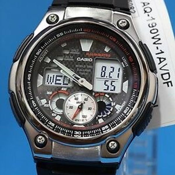Casio Aq 190w 1a Men S Combination World Time Alarm Gear Sport Watch Black Dial 76 Picclick