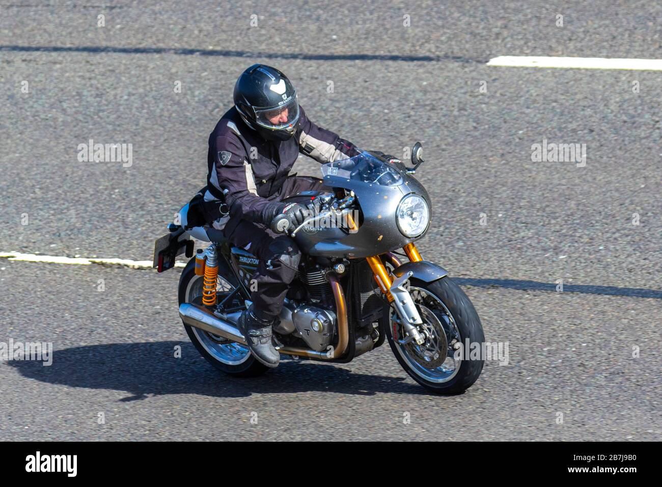 Triumph Thruxton Rs Motorcycle Rider Vehicular Traffic Two Wheeled Transport Modern Vehicles Motorcycles Vehicle Roads Motorbikes Bike Riders Motoring On The M6 Motorway Chorley Uk Stock Photo Alamy