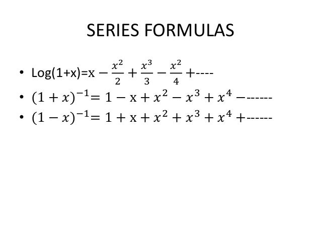 Expansions at generic point z==z 0. Some Important results from logarithmic series (2) The series expansion of log e (1 + x) may fail to be valid, if |x| is not. We know Z 1 1 + x dx = ln(1 + x).