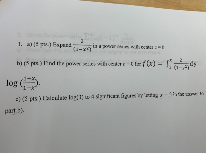 Solved A 5 Pts Expand 1 X2 In A Power Series With Ce Chegg Com