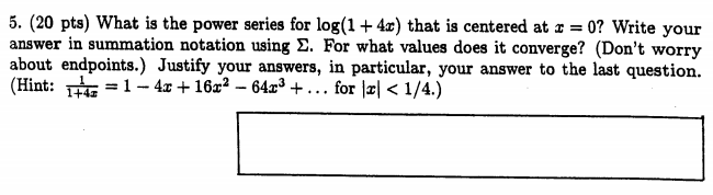 Solved 5 Pts What Is The Power Series For Log 1 4x Chegg Com
