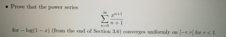 Solved Prove That The Power Series N 1 For Log 1 2 Chegg Com