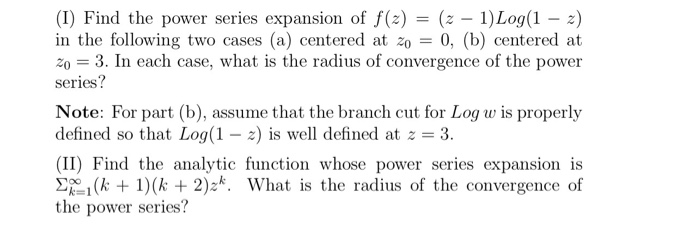 Solved 1 Find The Power Series Expansion Of F X Z Chegg Com