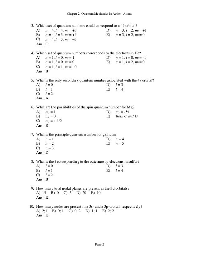 Objective Test 2 On Quantum Numbers Mm 30 Time 45 Min