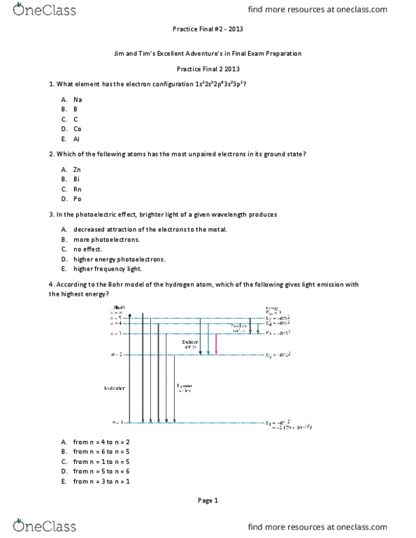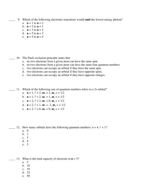 Question And Problem Set With Answers Orbitals Chemistry 105 Studocu