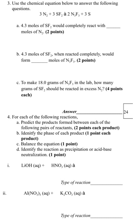 Solved 3 Use The Chemical Equation Below To Answer The F Chegg Com