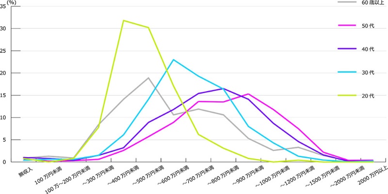 日本の年収の割合ってどのくらい 年齢 職業 地域別の割合分布