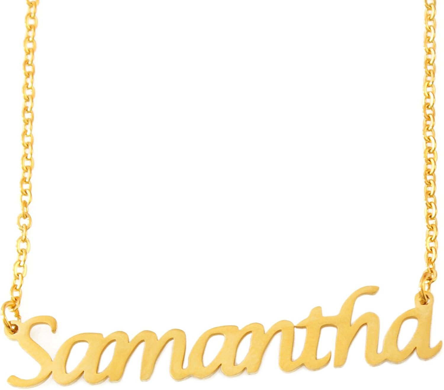 Amazon Com Loenme Jewelry Samantha Name Necklace Custom Personalized In Gold Plate Gift For Women Girls Couple Jewelry