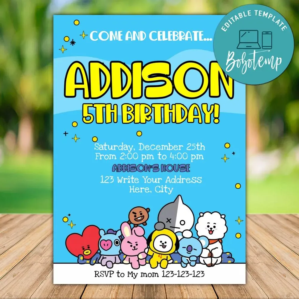 Editable Bt21 Birthday Invitation Instant Download Bobotemp