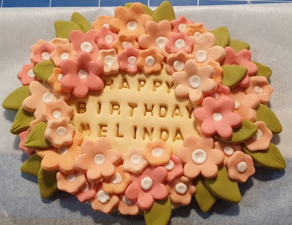 Happy Birthday Flower Plate Fondant Cake Topper Etsy