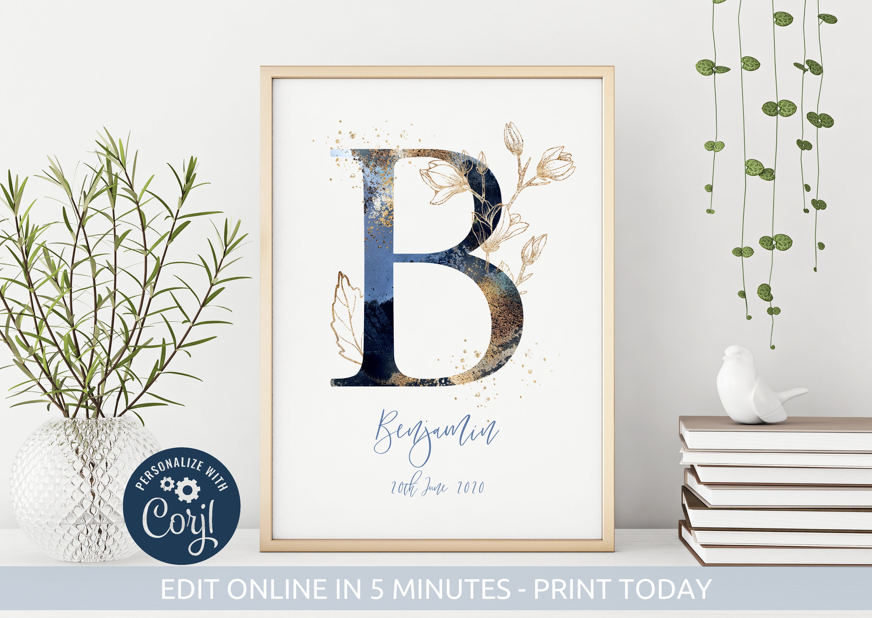 Custom Baby Name Art Initial Letter B Printable Name Sign Etsy