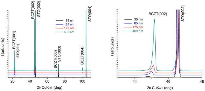 Impact Of Thickness Variation On Structural Dielectric And Piezoelectric Properties Of Ba Ca Ti Zr O 3 Epitaxial Thin Films Scientific Reports