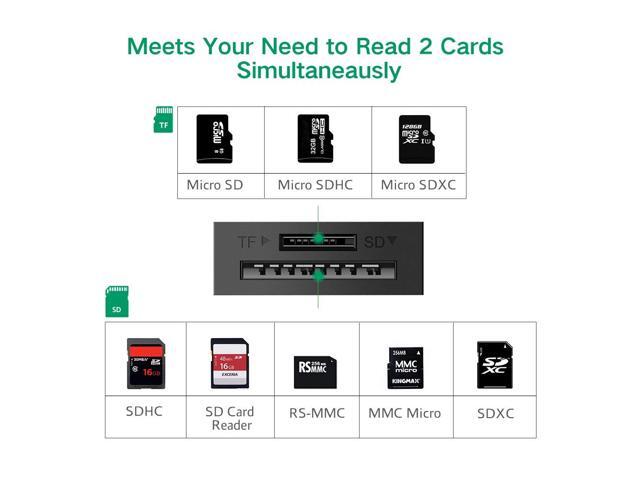 Ugreen Sd Card Reader Portable Usb 3 0 Dual Slot Flash Memory Card Adapter Hub For Tf Sd Micro Sd Sdxc Sdhc Mmc Rs Mmc Micro Sdxc Micro Sdhc Uhs I For Mac Windows Linux