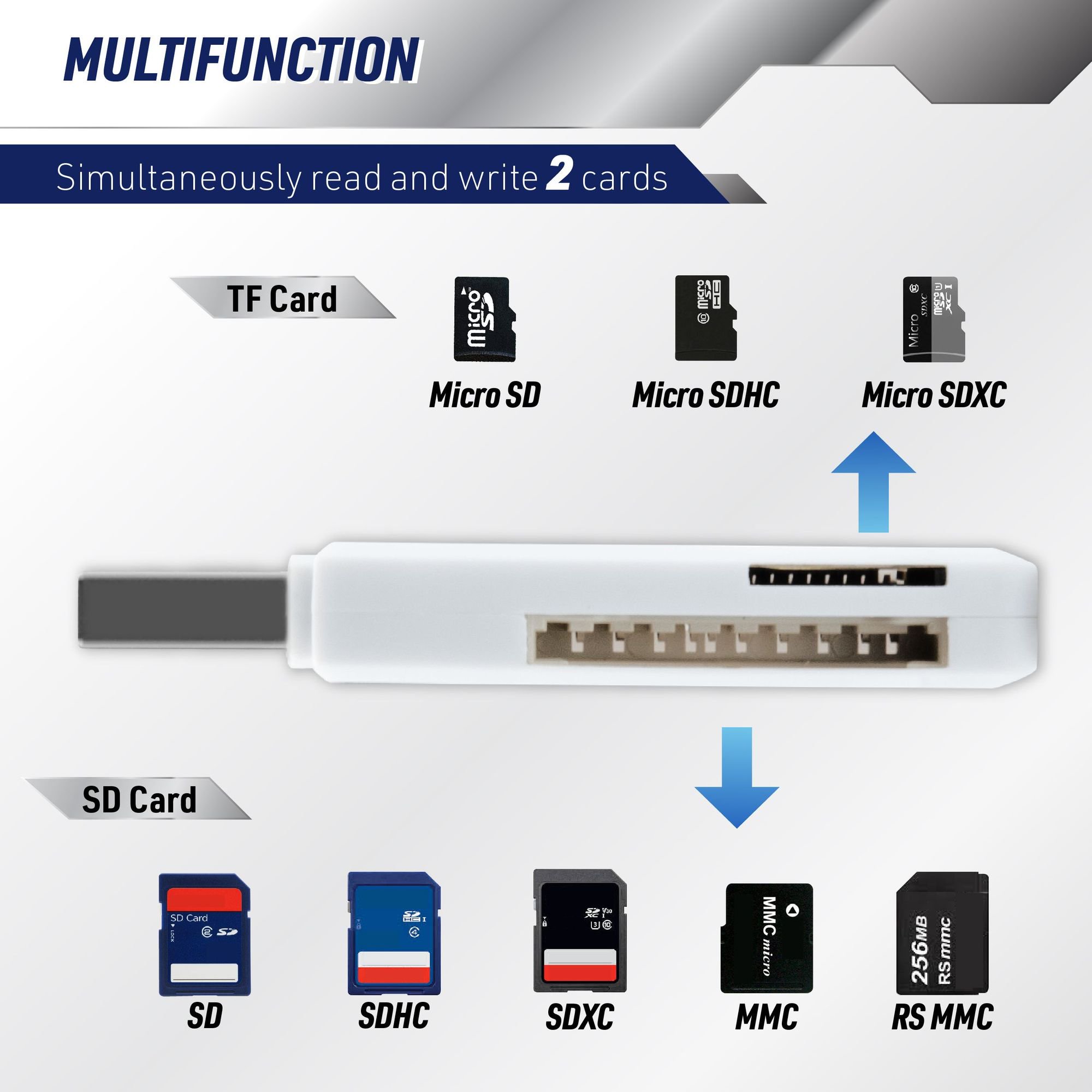 Dual Slot Card Reader Usb 3 0 5gbps Card Reader Sd Micro Sd Sdxc Sdhc Micro Sdxc Micro Sdhc Uhs I Mmc Rs Mmc For Windows Mac Chromebook Linux Duo Read 2 Cards Simultaneously White