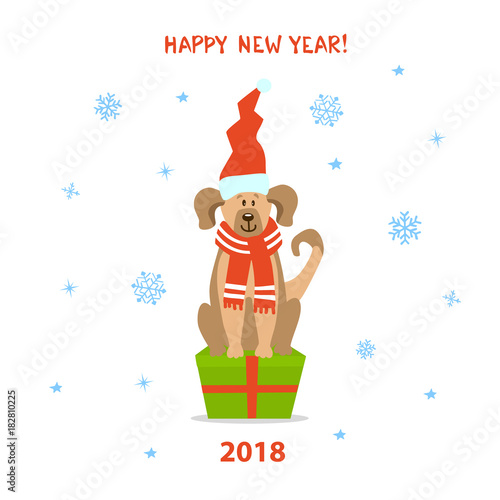 Merry Christmas Happy New Year 18 Cute Funny Cartoon Dog Sitting On A Xmas Gift Box Isolated Vector Illustration Buy This Stock Vector And Explore Similar Vectors At Adobe Stock Adobe Stock