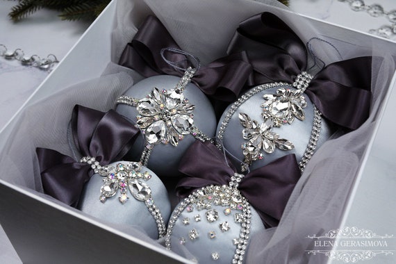 Christmas Rhinestones Ornaments Handmade Balls In Gift Box Etsy