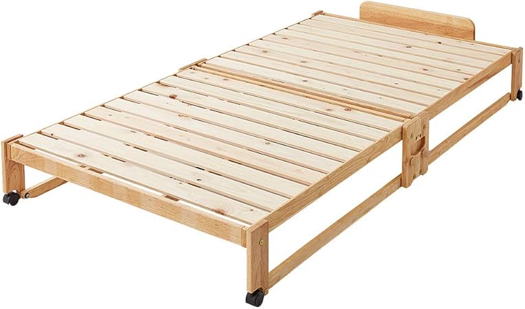 Amazon 軽い力で簡単に折りたためる 天然木ベッド ファミリー ライフ 中居木工製折りたたみ式ひのきすのこベット シングルワイド アウトレットファニチャー ベッド ベッドフレーム