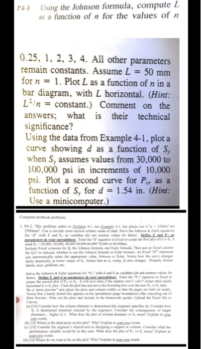4 1 Using The Johnson Formula Compute L As A Func Chegg Com