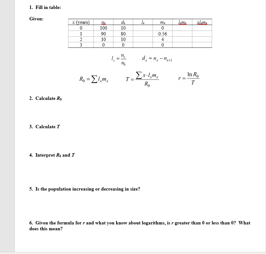 Solved 1 Fill In Table Given Ix X Years 0 1 2 3 Nx 1 Chegg Com
