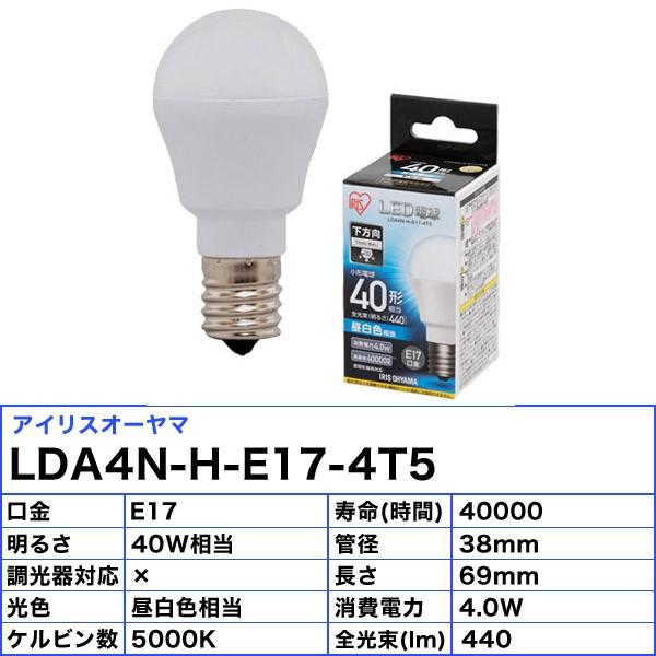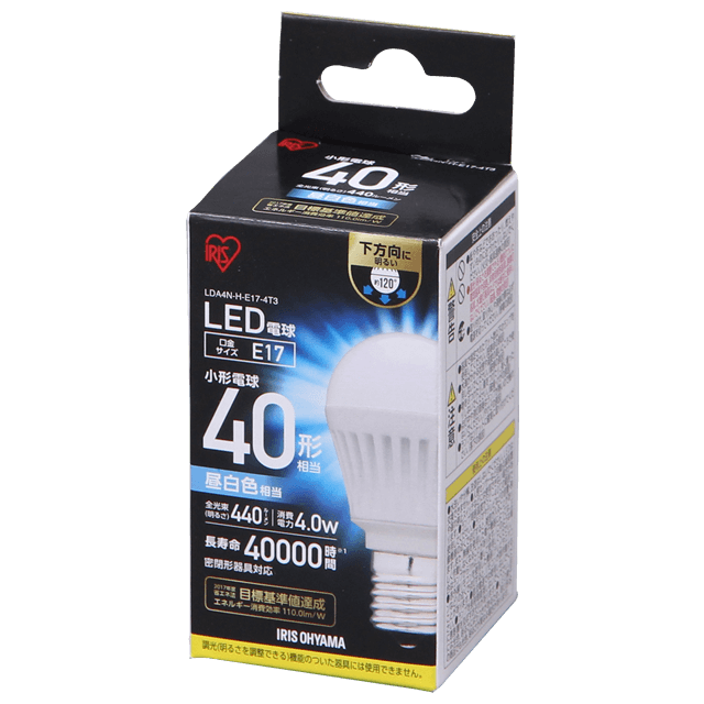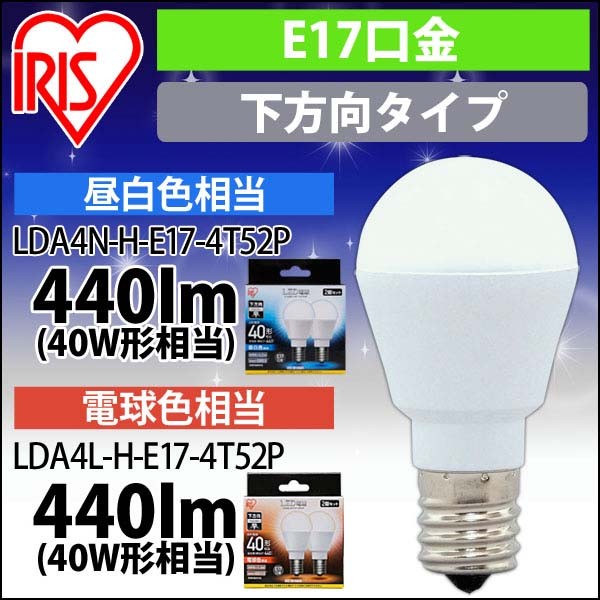 Led電球 E17 下方向タイプ 40w形相当 昼白色相当 Lda4n H E17 4t5 H5679f アイリスプラザ アイリスオーヤマ公式通販サイト