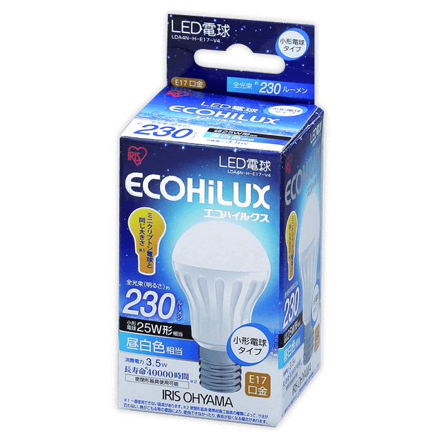 Lda4n H E17 V8 Led電球 小形タイプ 昼白色 230lm Led照明器具商品データ検索 法人向けled照明器具 アイリスオーヤマ株式会社