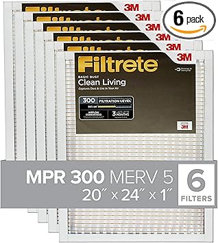 Amazon Com Filtrete 12 6pk 1e 24x24x1 Ac Furnace Air Filter Mpr 300 Clean Living Basic Dust 6 Pack Home Improvement