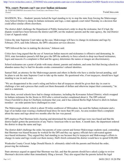 Parents Can T Sue Over Indian Nickname Indian Mascots And Logos