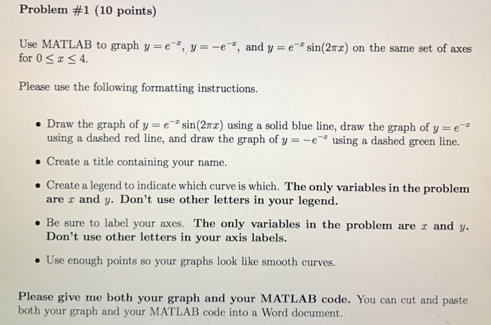 Solved Use Matlab To Graph Y E 0 1r Y E 0l And Y E Chegg Com