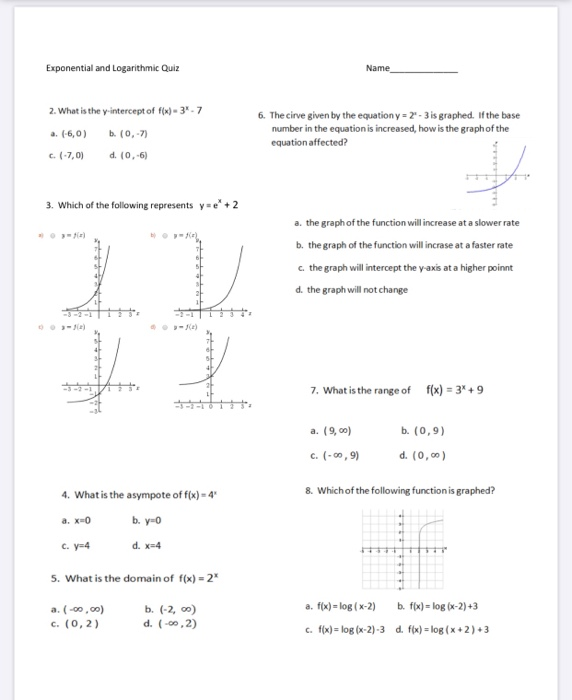 Solved Exponential And Logarithmic Quiz Name 2 What Is T Chegg Com