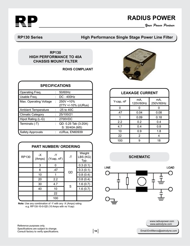 Single Phase Emi Filters Rp130 Series