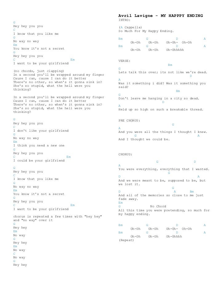 Chord Girlfriend Avril Lavigne Tab Song Lyric Sheet Guitar Ukulele Chords Vip