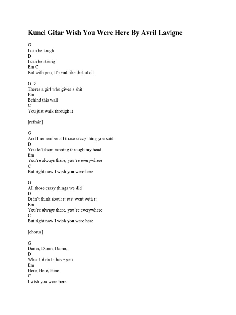 Chord Gitar Lirik Lagu Barat Dan Indonesia Chord Gitar Lyrics Avril Lavigne Wish You Were Here